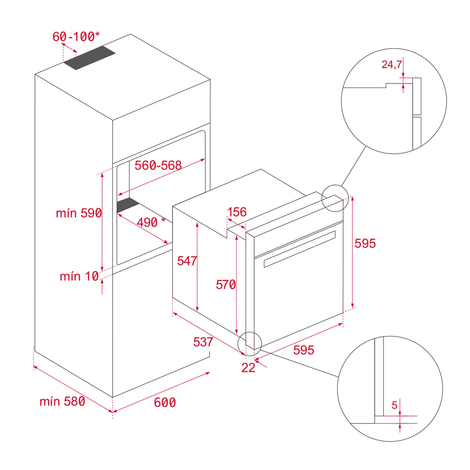 - DISEÑO QUE SE AJUSTA A TI: horno grande que cuenta con un diseño cuidadosamente elaborado, con un panel de acero inoxidable antihuella y soportes cromados con 1 sistema de guía extraíble que hará que este horno 60x60 quede perfecto con el resto de muebles y electrodomésticos en tu cocina